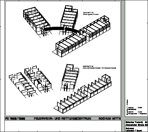 Grundriß OG, Schnitte, Drahtmodell, 1. Teilaufgabe