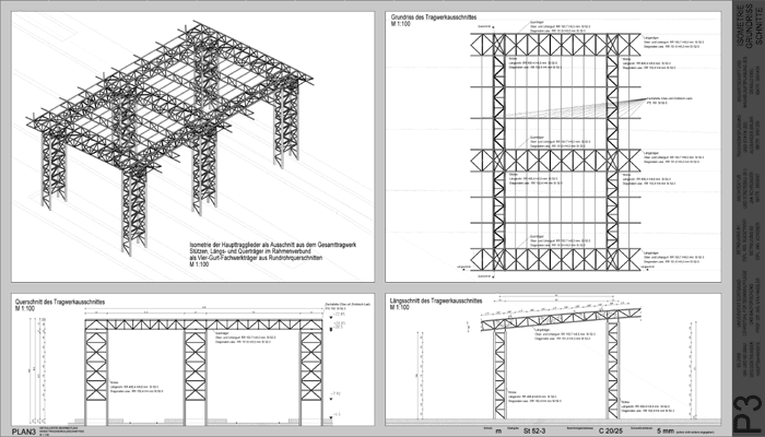 Plan 3 des 3. Kolloquiums, Detaillierte Bearbeitung eines Tragwerkausschnittes