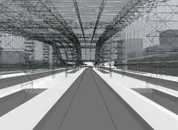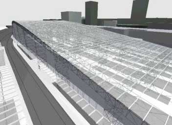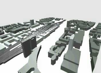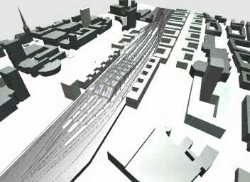 Die Bahnhofshalle und die qualitativen Baukörper der geplanten Bahnhofsneugestaltung